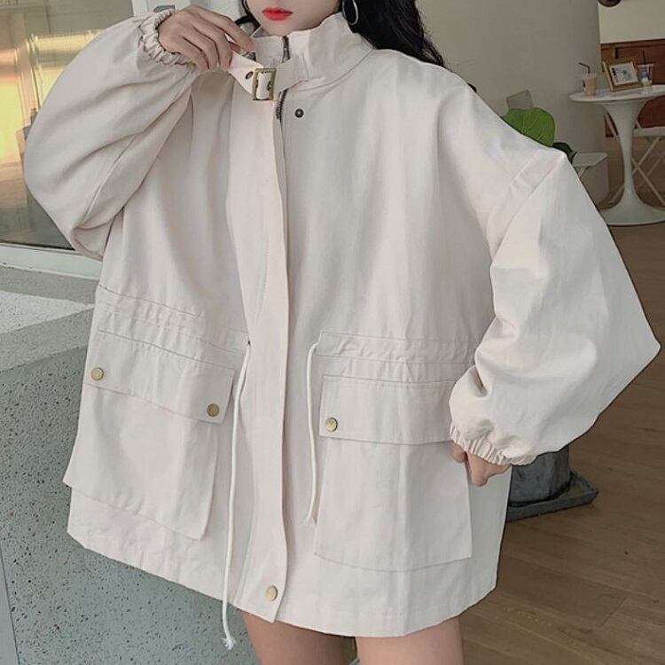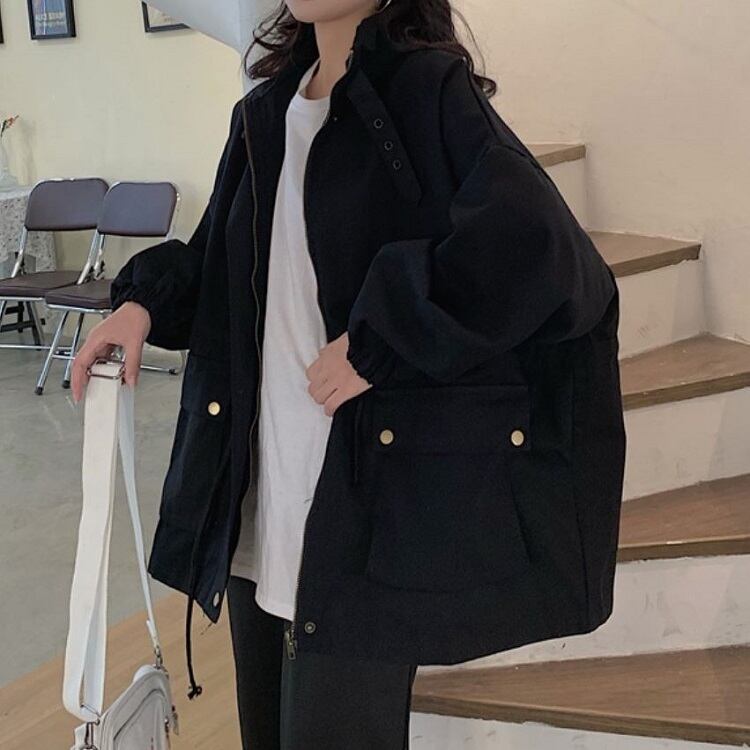 全2色2種 ミリタリージャケット ジャケット ショート丈 スタンドカラー ゆったり ドロップショルダー 裏起毛 無地 きれいめ カジュアル お出かけ デート レジャー 秋冬 春