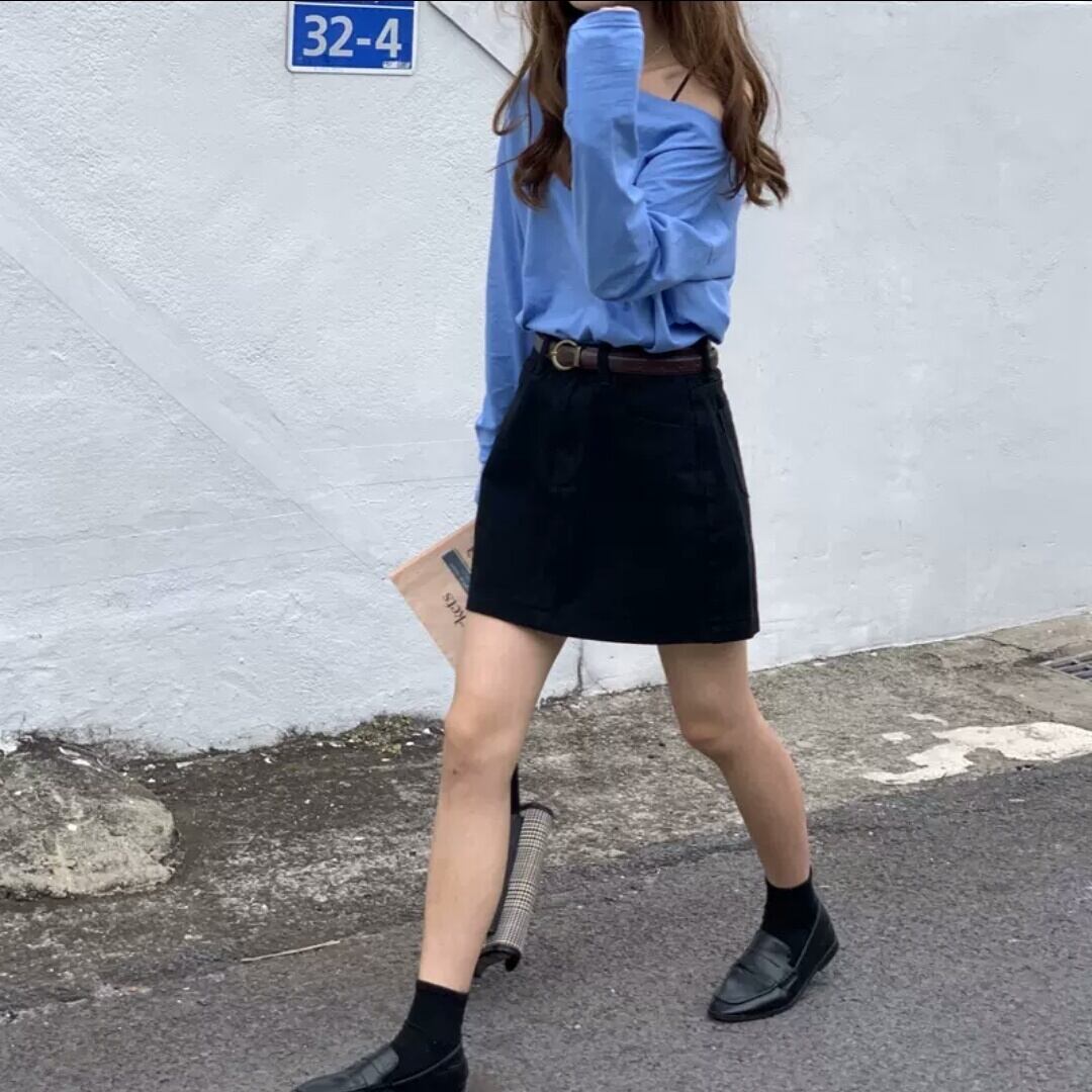 全3色 オーバーショルダー 無地 シンプル 薄手 長袖 Tシャツ 大人 カジュアル 可愛い キレイめ お出かけ お買い物 デート 女子会 春 夏 通学 学生 通勤 韓国ファッション