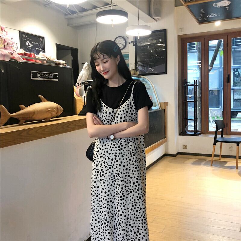 全2色 レオパード柄 ワンピース キャミソールワンピ 肩ひも ミモレ丈 ロング カジュアル トレンド 夏秋 カジュアル かわいい 重ね着 双子コーデ デイリー