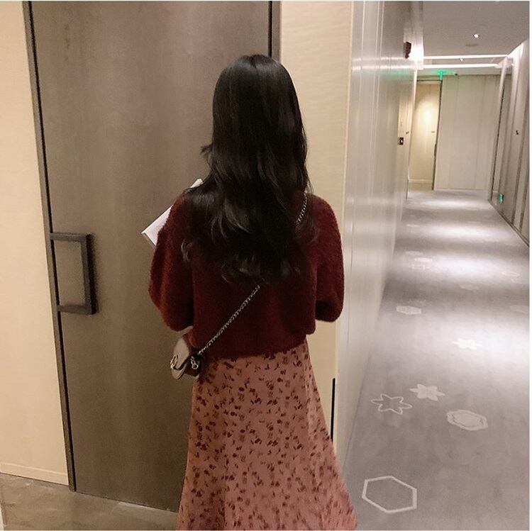 全2色 コーデュロイスカート 花柄 ミディ丈 レトロ ゆったり カジュアル かわいい きれいめ お出かけ デート アプリコット レッド