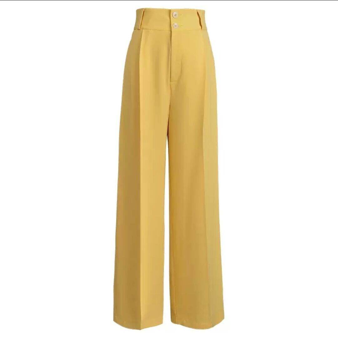 ハイウエスト ワイドレッグパンツ ボトムス パンツ 大人 キレイめ カジュアル 薄手 無地 シンプル イエロー 黄色 お出かけ お買い物 デート 女子会 秋冬 春 通学 学生 通勤 韓国ファッション
