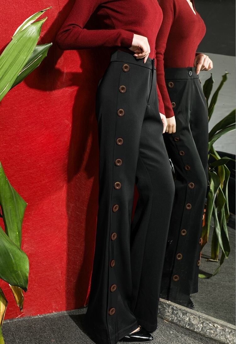 全2色 パンツ ボトムス サイドボタン ハイウエスト ブーツカットパンツ カジュアル きれいめ 上品 デート 大人 スタイルアップ ワイドパンツ 春 夏