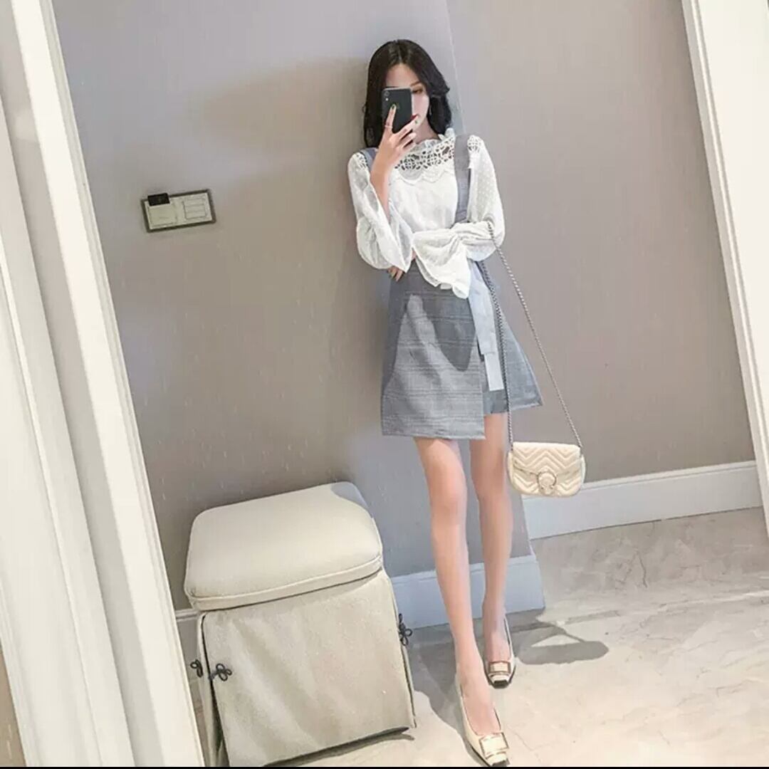 全2色 セットアップ ツーピース ストラップ ワンピース ドレス リボン トップス ブラウス 大人 可愛い キレイめ エレガント 上品 お出かけ お買い物 デート 女子会 春 夏 秋 通学 学生 通勤 韓国ファッション