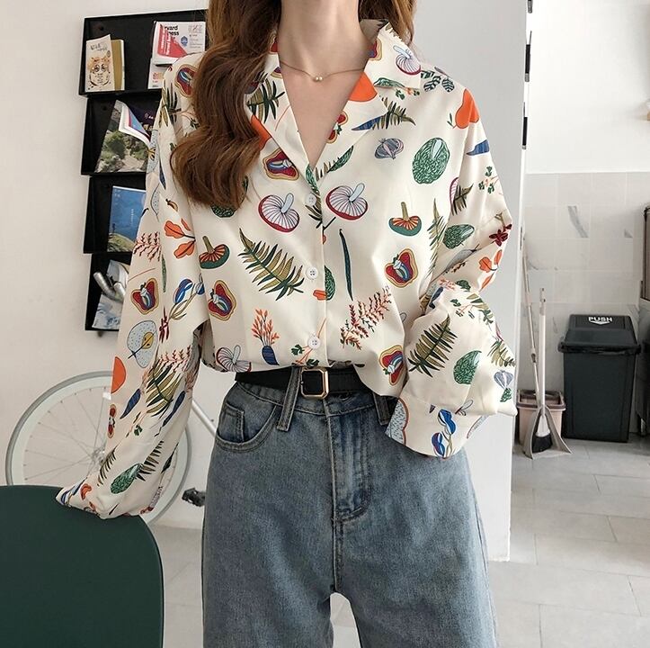 シャツ トップス フロントボタン 柄 ロングスリーブ オーバーサイズ ボタニカル ゆったり レトロ カジュアル 大人 上品 ユニック 体型カバー 春 夏