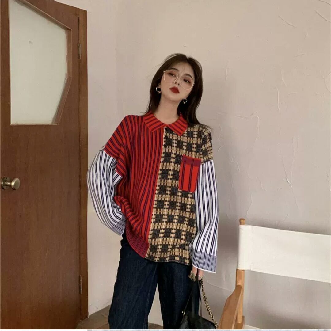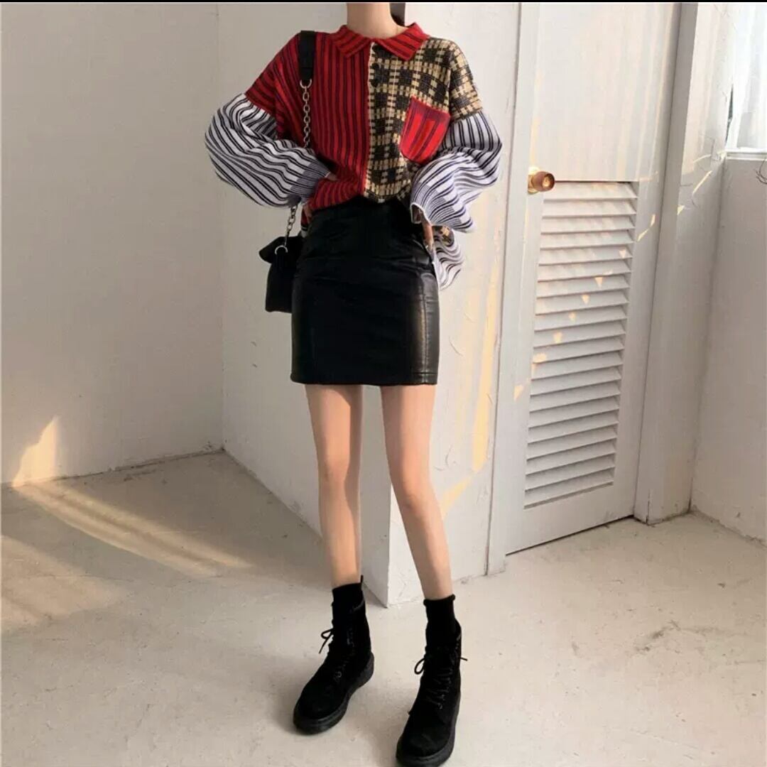 チェック柄 ストラップ シャツ 個性的 大人 カジュアル ストリート系 お出かけ お買い物 デート 女子会 秋冬 春 通学 学生 通勤 韓国ファッション