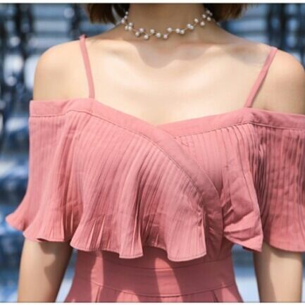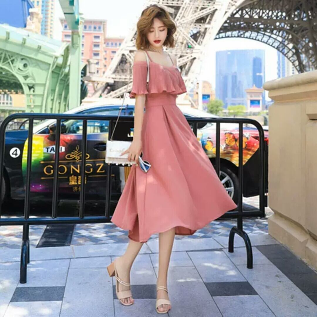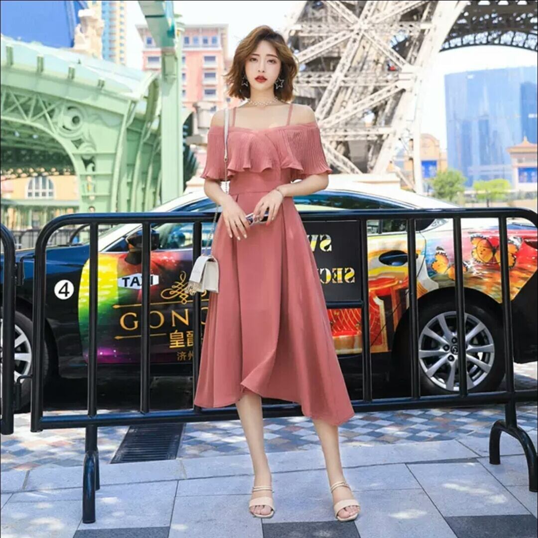 ストラップ オフショルダー ワンピース マキシ丈 大人 可愛い キレイめ エレガント 上品 お出かけ お買い物 デート 女子会 春 夏 お呼ばれ パーティー ドレス 韓国ファッション