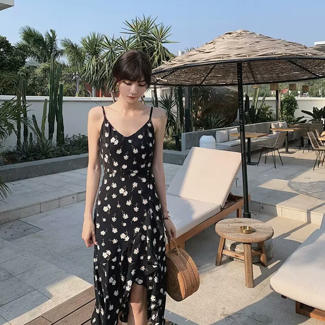 花柄 ストラップ ワンピース ロング丈 シフォン 大人 カジュアル 可愛い キレイめ リゾート お出かけ お買い物 デート 女子会 春 夏 通学 学生 通勤 韓国ファッション
