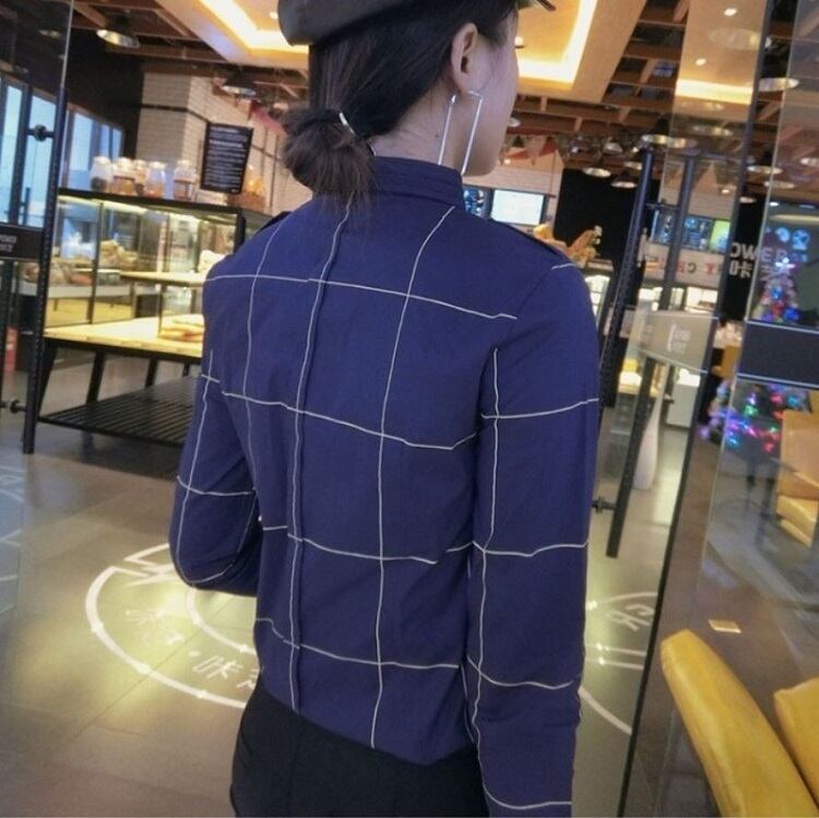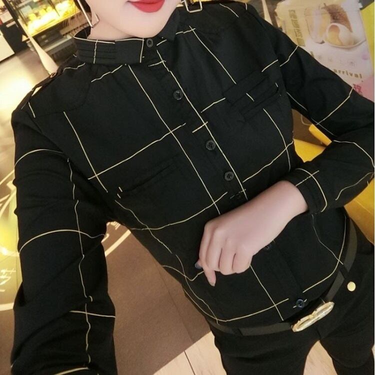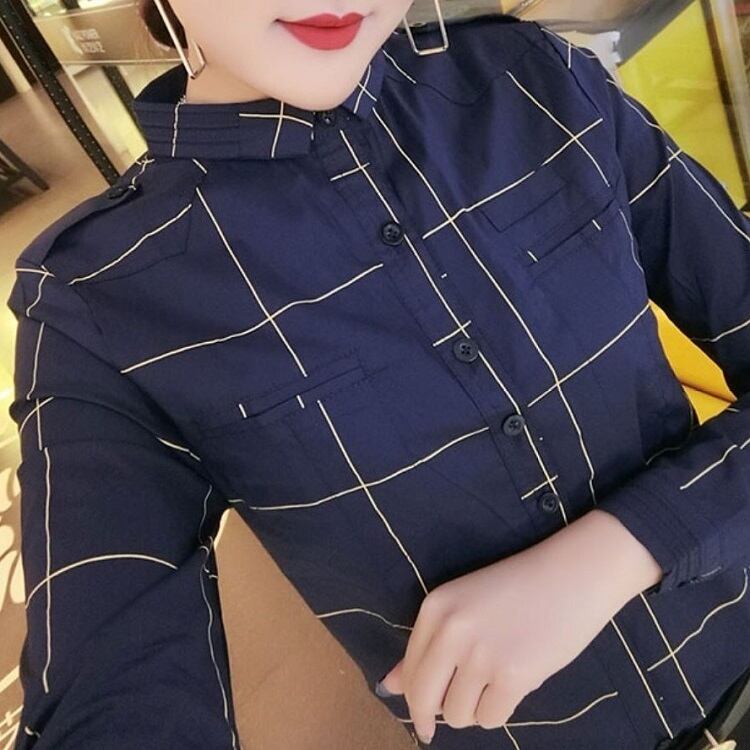 全2色 大きいサイズ チェックシャツ 長袖 ブラウス スリム かわいい カジュアル お出かけ 通学 デイリー 普段着 ブラック ブル