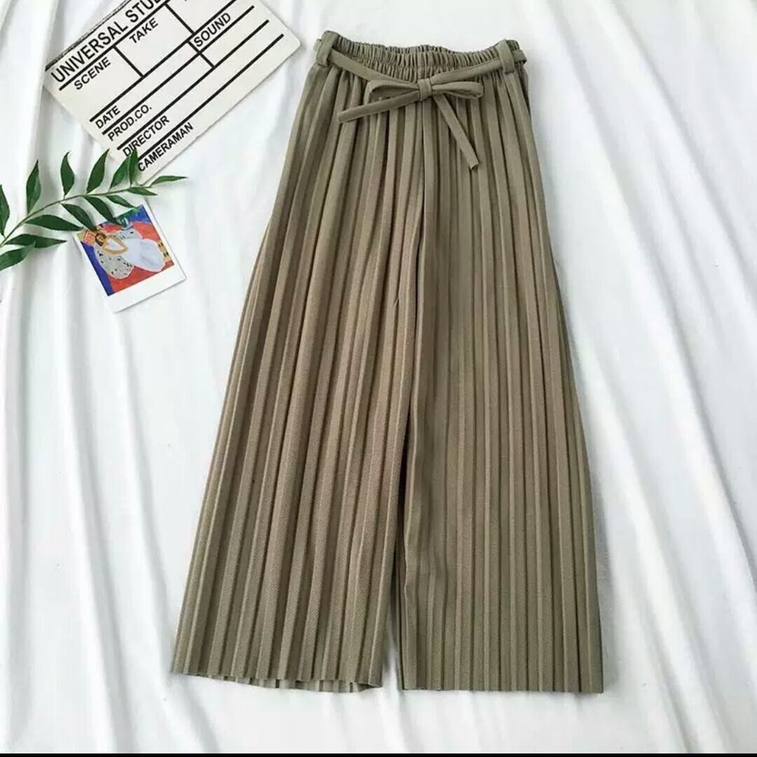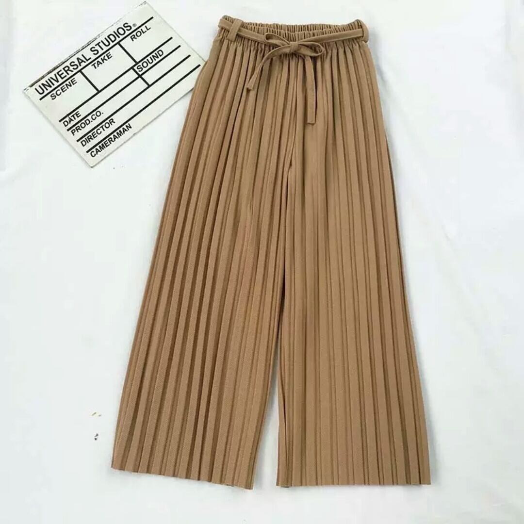 全4色 ルーズ プリーツ ワイドレッグ パンツ ワイドパンツ 無地 シンプル 大人 可愛い カジュアル キレイめ リボン お出かけ お買い物 デート 女子会 秋冬 春 通学 学生 通勤 韓国ファッション