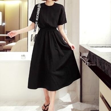 ウェストゴムが印象のロング丈ワンピース