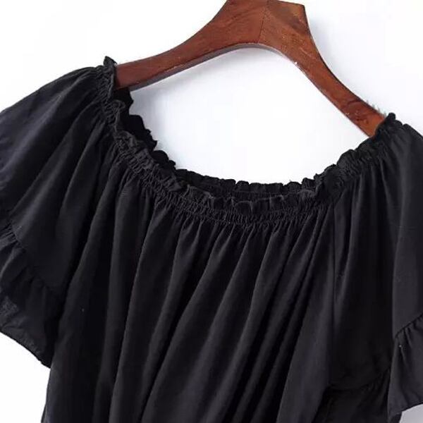 全5色2種 オフショル ショート丈 フリル セクシー カットソー 肩紐 半袖カットソー 全2種 5色