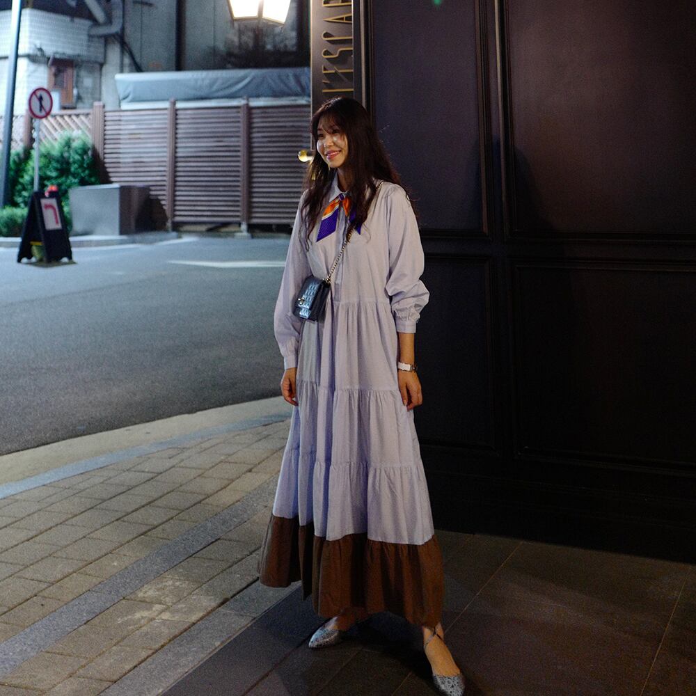 ティアードデザインがおしゃれでフェミニンなロング丈ワンピースです。