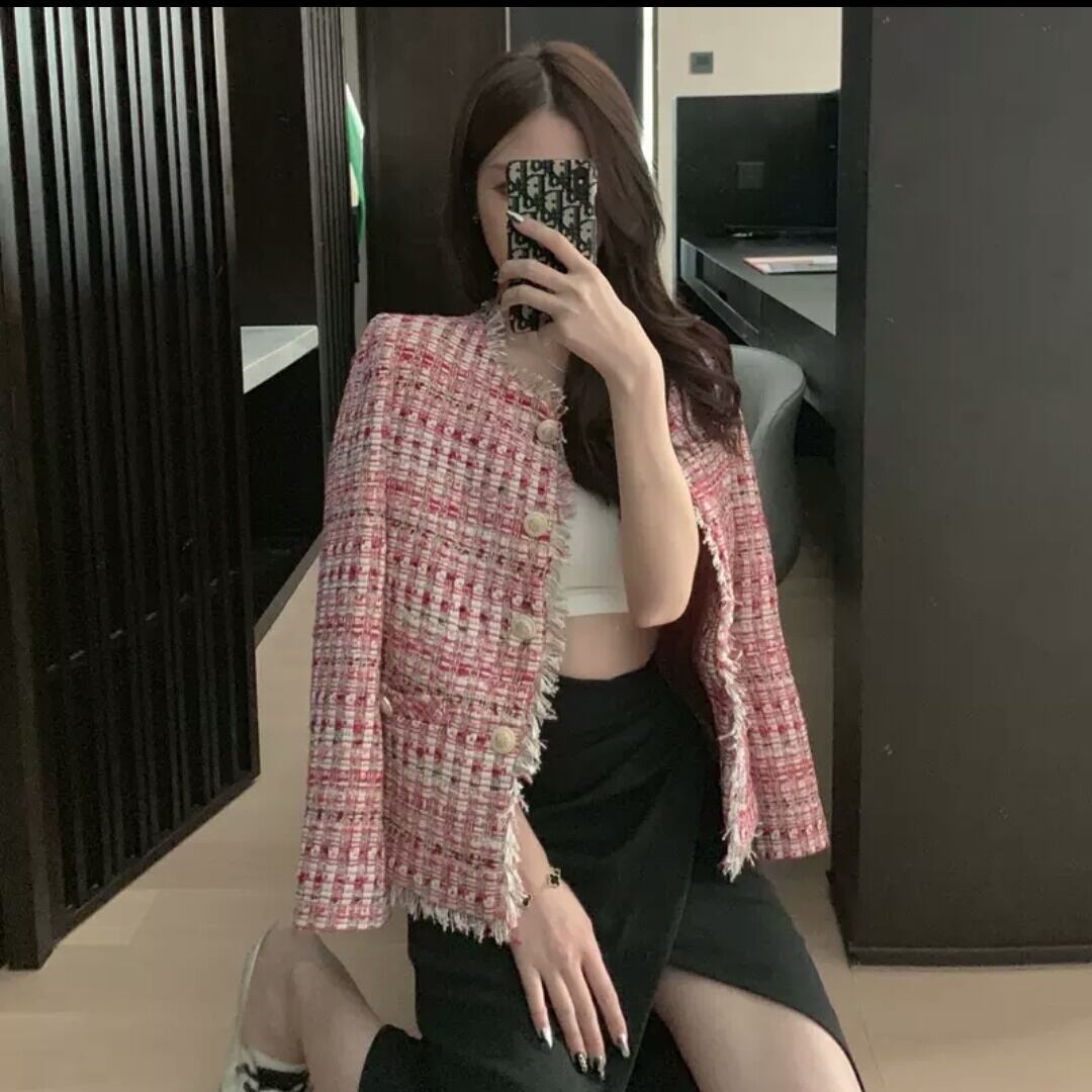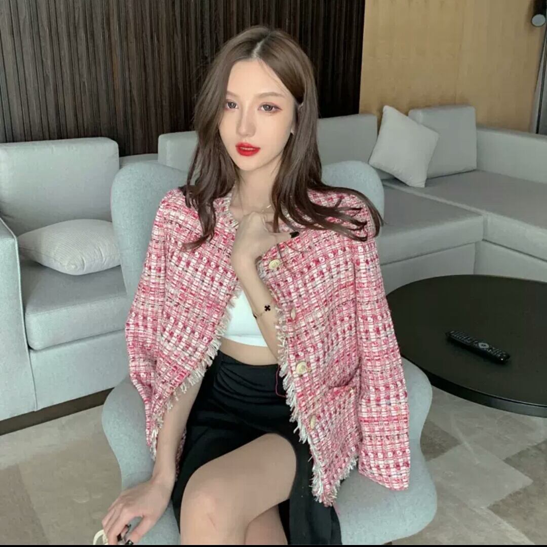 ツイード ジャケット ピンク お出かけ お買い物 デート 女子会 通勤 大人 カジュアル キレイめ シンプル フォーマル 秋冬