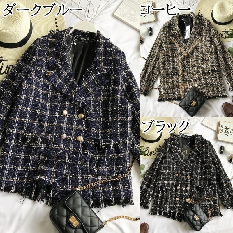 全3色 ツイード ジャケット チェック柄 長袖 テーラードジャケット 秋冬 きれいめ エレガント 上品 大人可愛い フェミニン カジュアル フォーマル お出かけ 通勤 オフィス