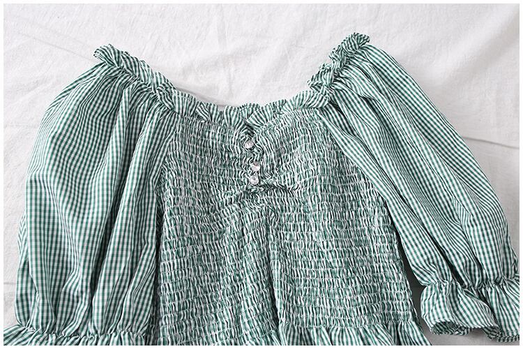 ギンガムチェックがレトロで可愛いオフショルダーブラウス。