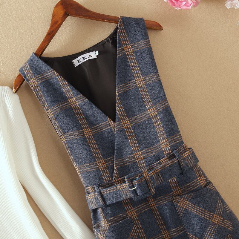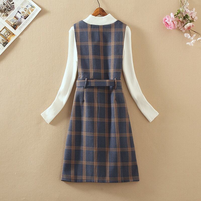 全4色 セットアップ ツーピース セーター ワンピース ベルト Vネック スリット ハイネック スリム カジュアル チェック柄 デート 秋 春 冬