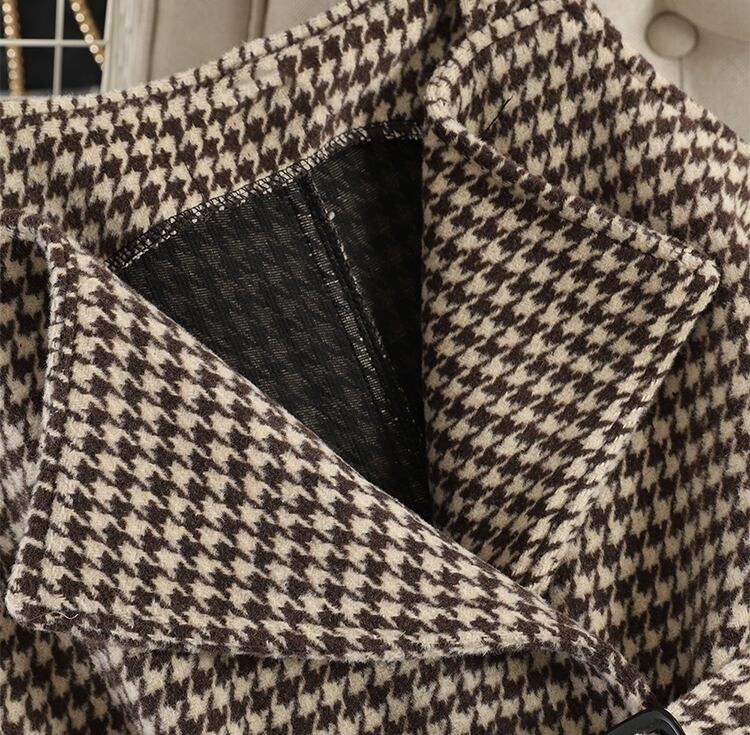 全2色 セットアップ ツーピース 2点セット ニット セーター ワンピース 千鳥格子 チェック柄 ベルト スリム ショート丈 フロントボタン トレンチ きれいめ カジュアル 大人可愛い ハイネック 秋 冬 春