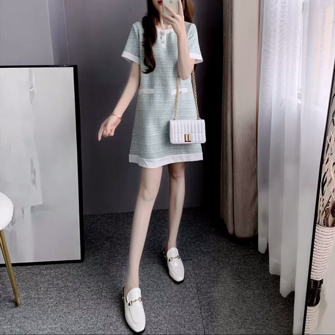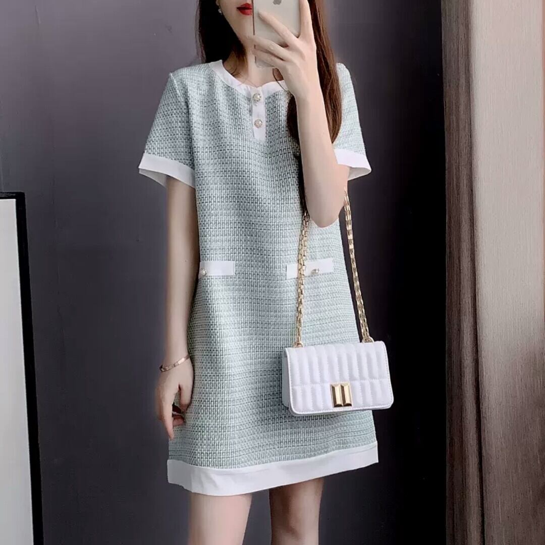 ツイード ショート丈 半袖 ワンピース ドレス ライトグリーン 大人 可愛い エレガント キレイめ 上品 お呼ばれ イベント パーティー お出かけ お買い物 デート 女子会 春 夏 通学 学生 通勤 韓国ファッション