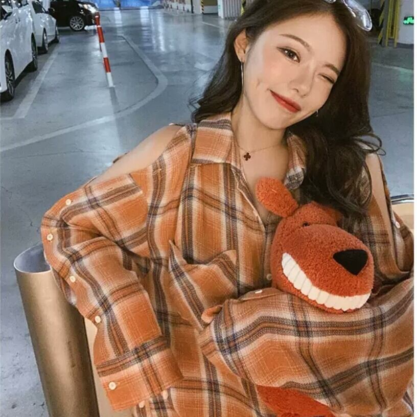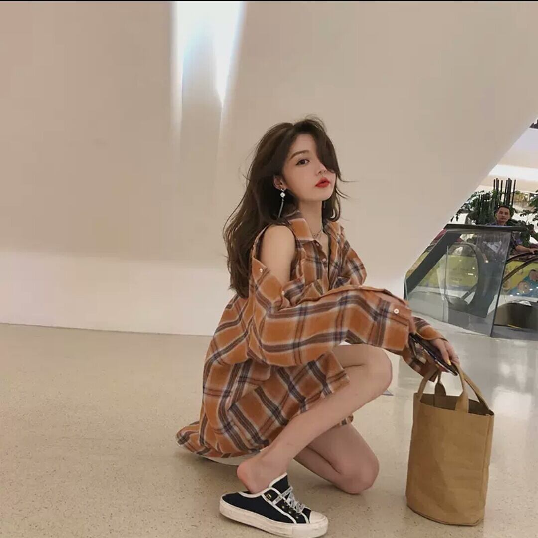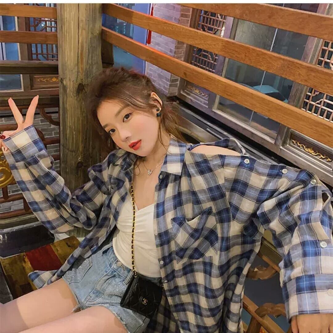 全2色 オフショルダー チェック シャツ 肩出し 肩あき 秋冬 春 シンプル 大人 カジュアル キレイめ 可愛い 通学 通勤 お出かけ デート 女子会 お買い物
