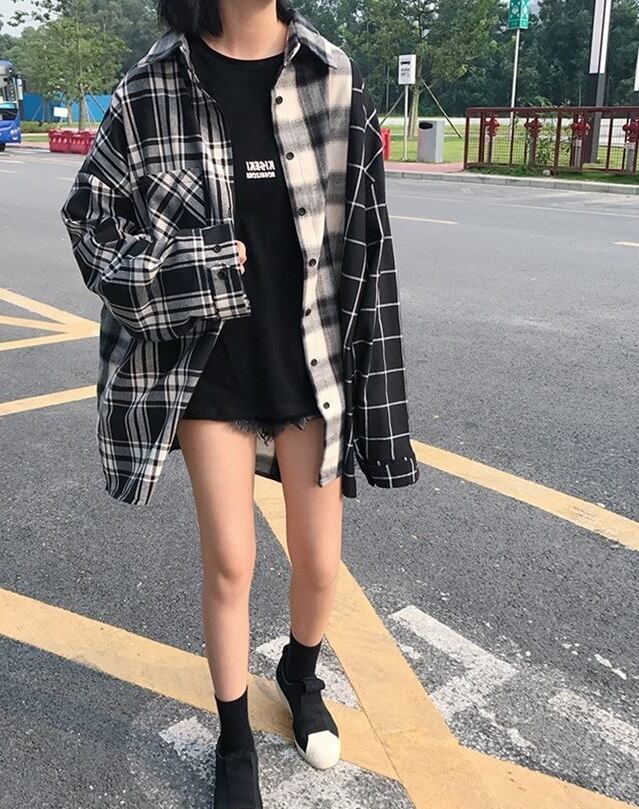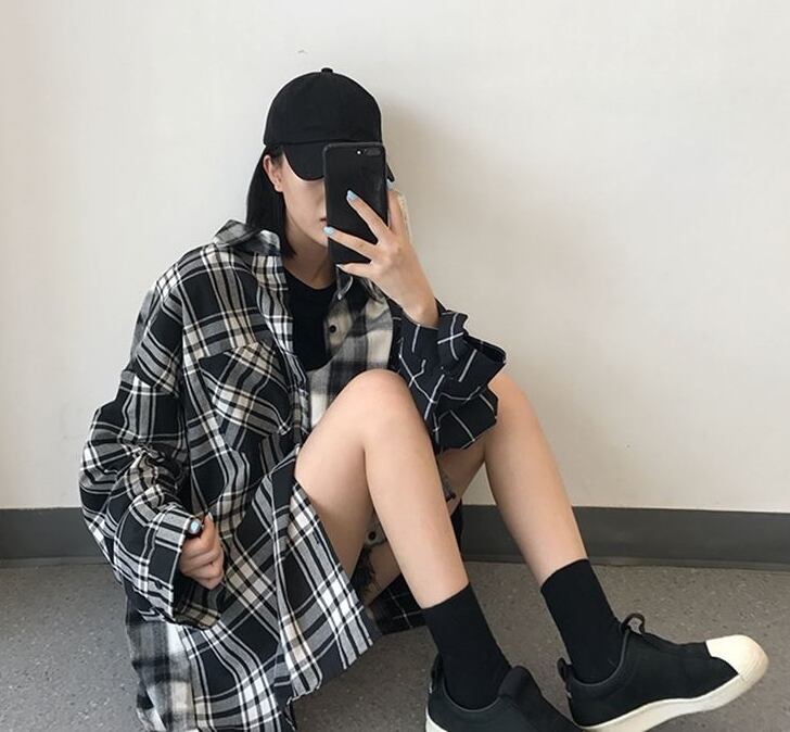 シャツ トップス チェック柄 前ボタン ロングスリーブ オーバー ゆったり ビッグシルエット ロング丈 羽織 アウター カジュアル トレンド