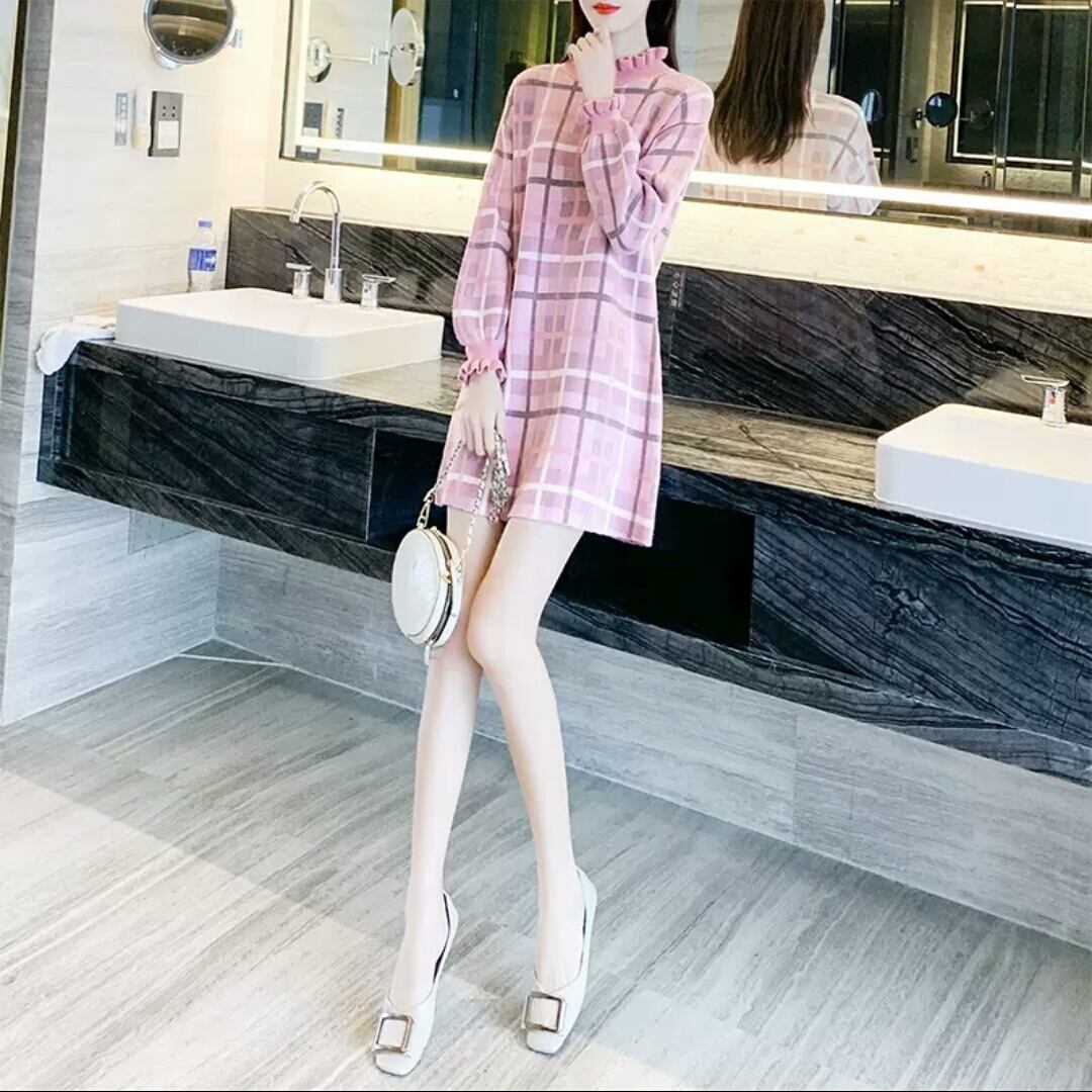 ショート丈 ニット 格子柄 フリル ワンピース 大人 可愛い カジュアル キレイめ 上品 お出かけ お買い物 デート 女子会 春 夏 通学 学生 通勤 韓国ファッション