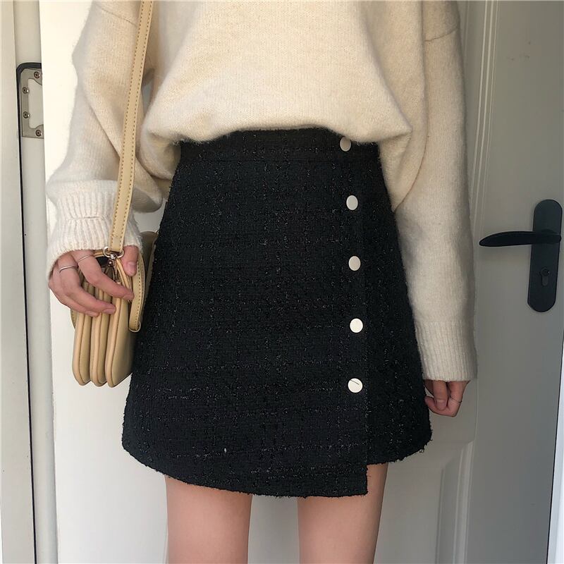 サイドボタンがおしゃれなミニ丈スカートです。