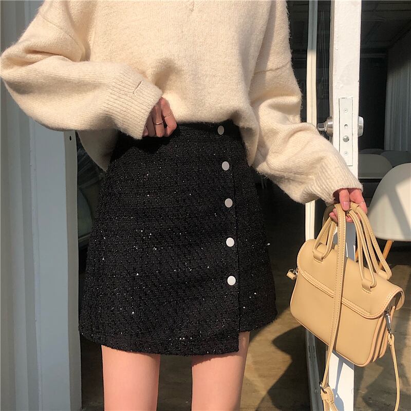 全2種類 スカート ボトムス ミニ丈 ラップスカート アシンメトリー キラキラ ラメ グリッター 光沢 サイドボタン Aライン スリム ガーリー 大人可愛い デート ハイウエスト カジュアル きれいめ 女子会 春 夏
