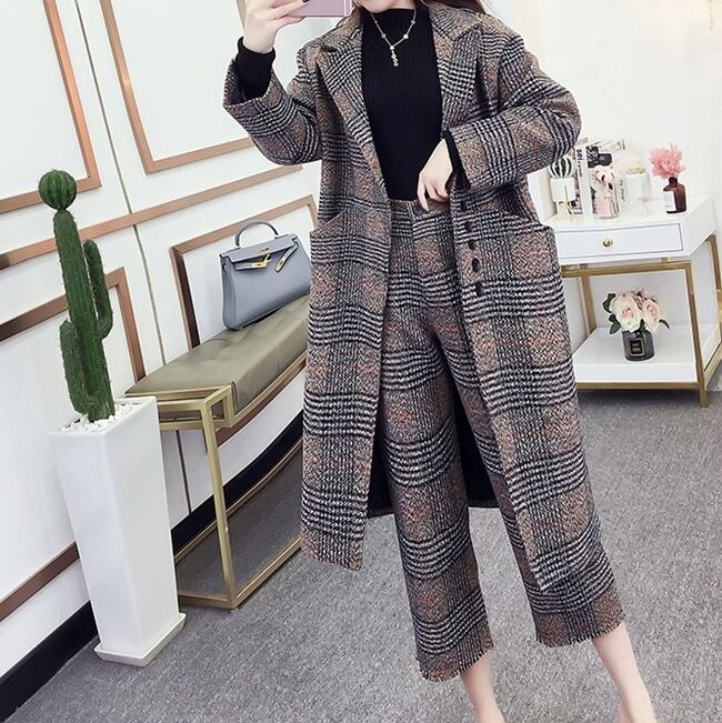 全2色 セットアップ ツーピース 2点セット アウター コート パンツ ジャケット チェック柄 トレンチ ロング アンクル丈 ボタン きれいめ 大人 エレガント 秋 春