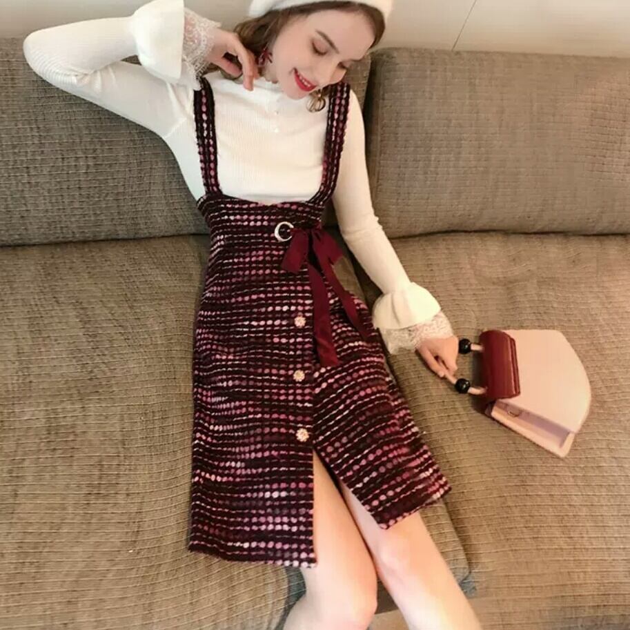 セットアップ ミニ丈 ショート丈 ニット ワンピース サスペンダー リボン 大人 キレイめ 上品 可愛い カジュアル お出かけ お買い物 デート 女子会 秋冬 春 通学 学生 通勤 韓国ファッション