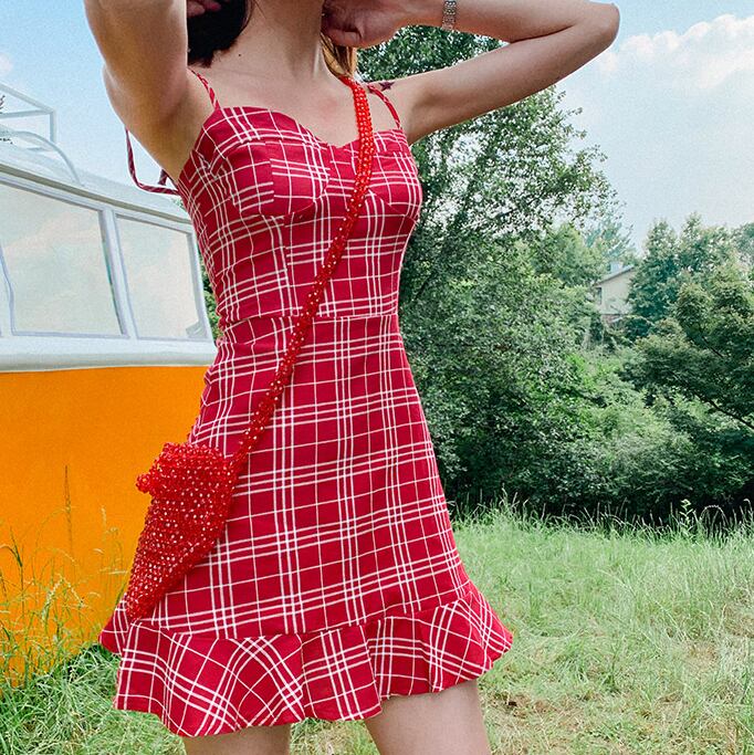 レトロなレッドチェックが可愛いキャミワンピースです☆