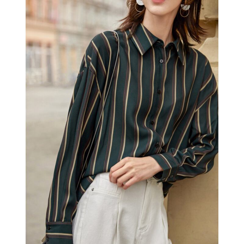 全3色 チェック柄 チェックシャツ ストライプシャツ シャツ シンプル レトロ 抜き襟 大人 カジュアル 可愛い お出かけ お買い物 通勤 OL デート 春 レディース