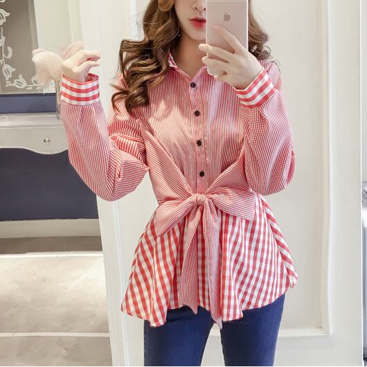 全3色 チェック柄 ギンガムチェック チェックシャツ シャツ レイヤード風 大人カジュアル ガーリー カジュアル 可愛い お出かけ お買い物 デート 春 秋 レディース