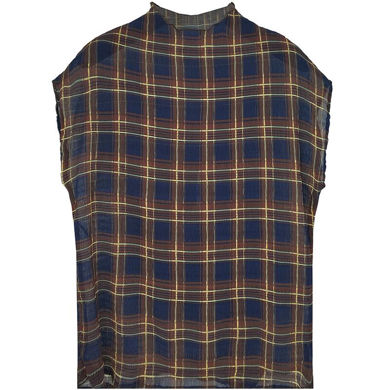 チェック柄 半袖ブラウス ブラウス ノースリーブ ショート丈 カジュアル 大人 可愛い お出かけ お買い物 通勤 OL デート 女子会 春 夏 レディース