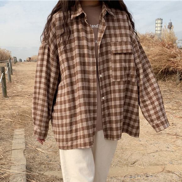 チェック柄のゆるっとしたシルエットシャツです。