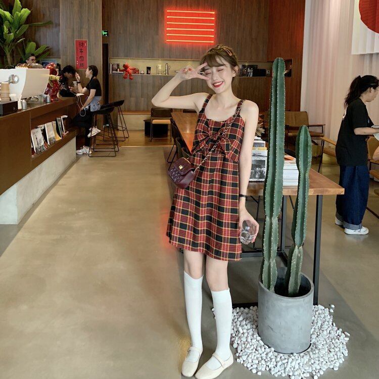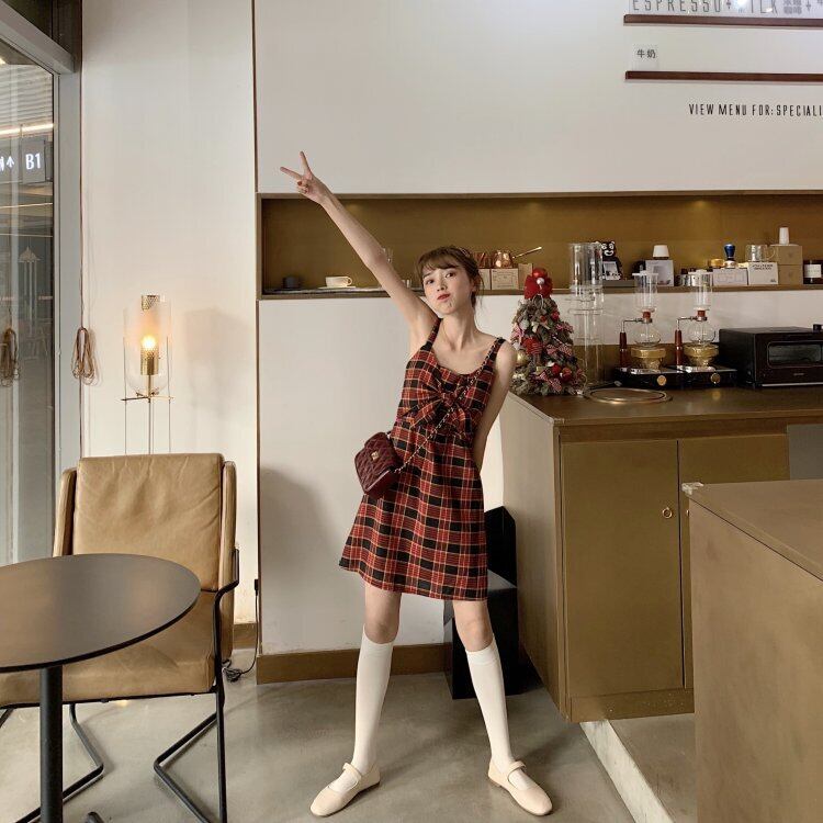 キャミワンピ チェック柄 ワンピース ミニ丈 リボン タイ タータンチェック 春 夏 かわいい カジュアル ガーリー フェミニン