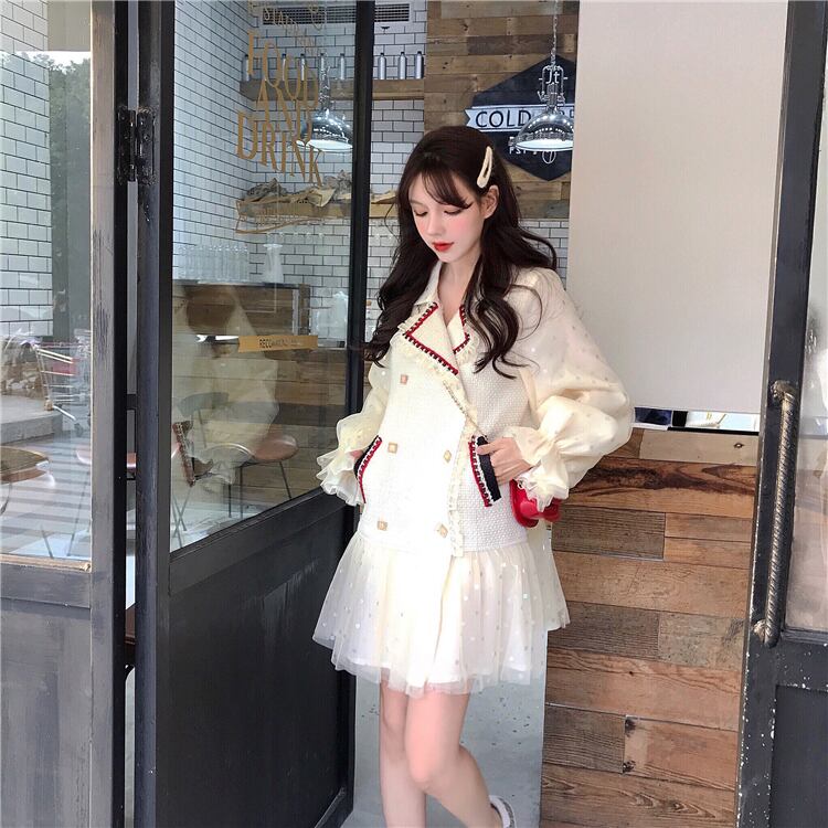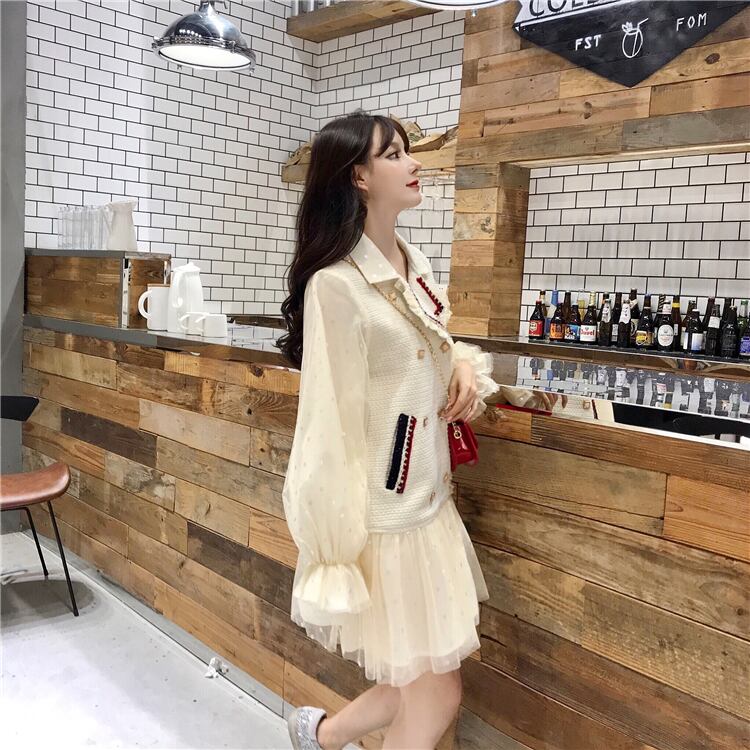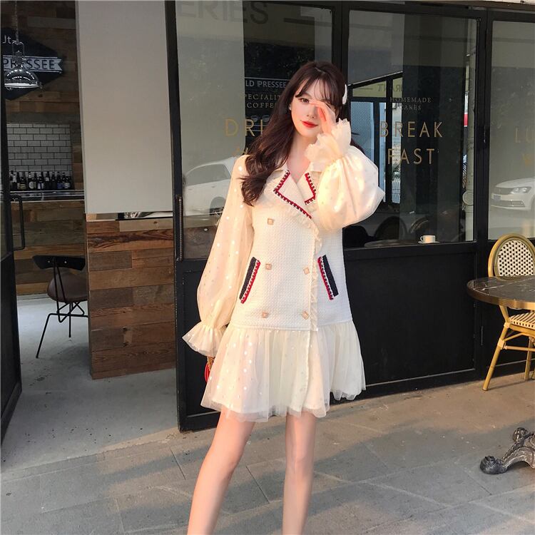 ワンピース フリル シフォン ドット ツイード チェック トリコロール コート風 オシャレ カワイイ 上品 ミニ丈 Aライン 春 夏 秋 レディース 長袖 ロングスリーブ 姫 ガーリー 妹コーデ