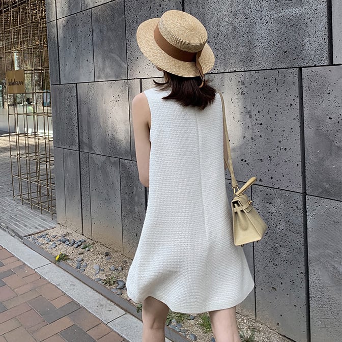 全2色 ツイード ノースリーブ ワンピース Aライン ミニ丈 ひざ丈 可愛い レディース エレガント フォーマル レトロ お出かけ お買い物 デート 女子会 夏