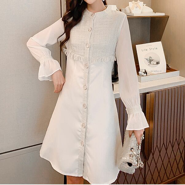 ツイード 切り替えワンピース シフォン フリンジ ベルスリーブ 袖フリル Aライン ワンピース ミニ丈 ひざ丈 レディース 可愛い ガーリー エレガント フォーマル お出かけ お買い物 デート 女子会 春 秋
