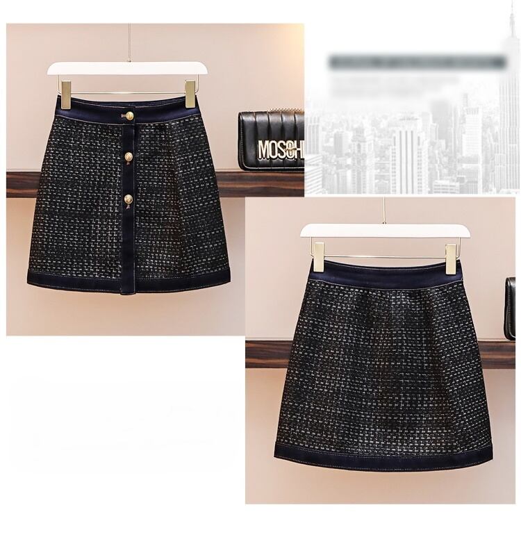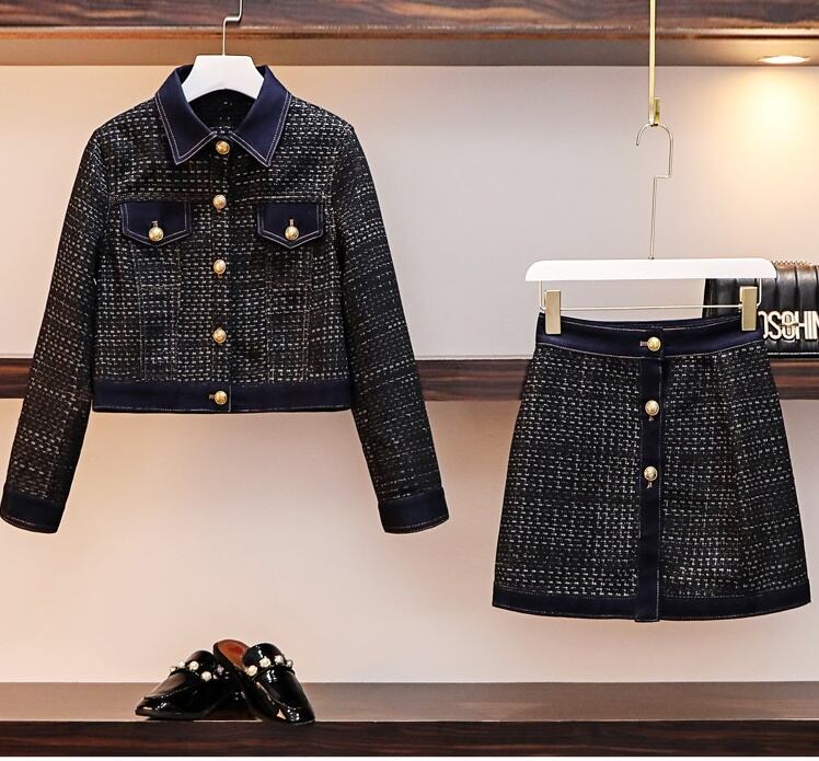 ツイード デニム セットアップ ツーピース ジャケット スカート ボタン ロングスリーブ 長袖 大きいサイズ 春 秋 冬 ネイビー かわいい 韓国 ミニスカート